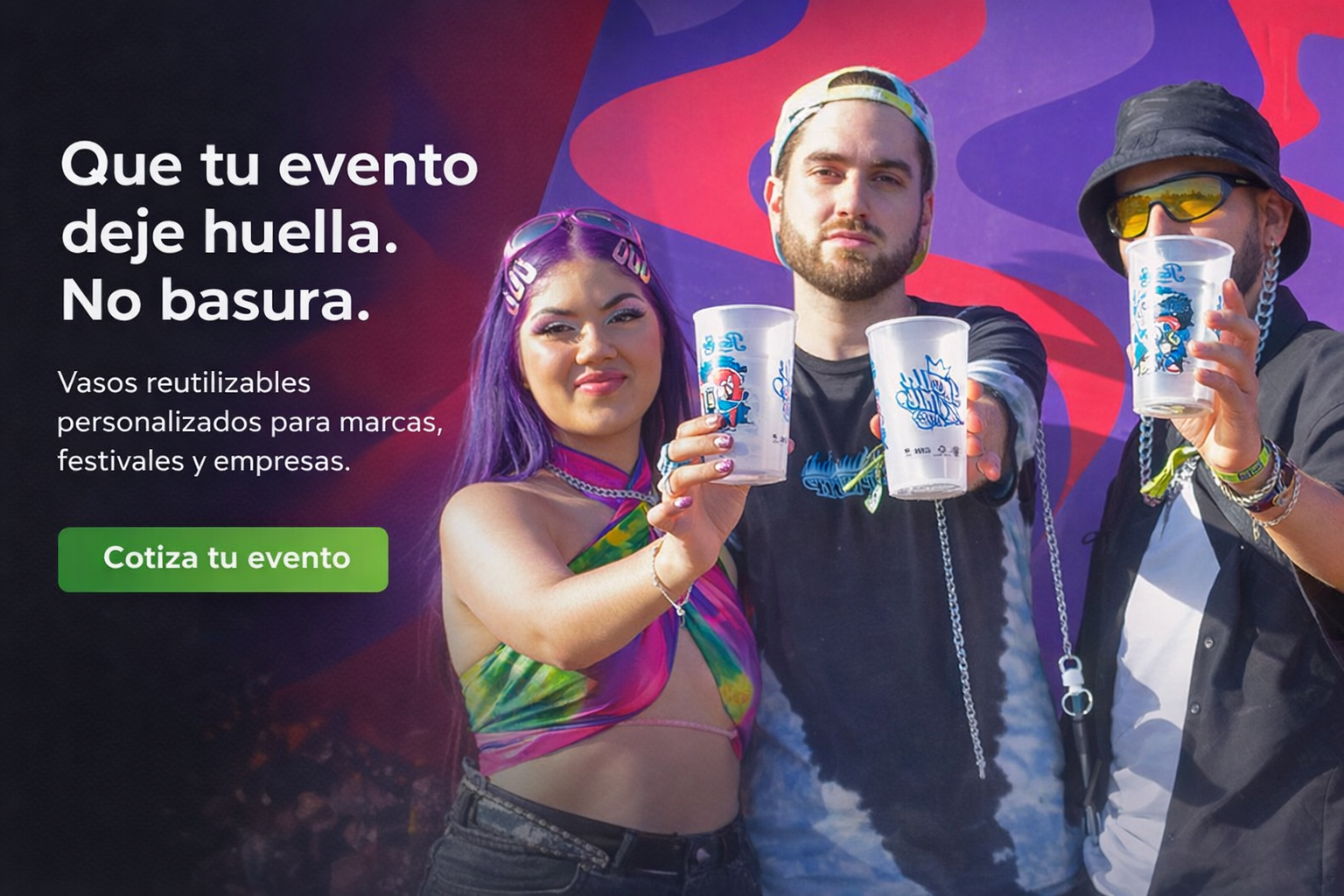 Mediante los vasos reutilizables personalizados pretendemos llegar a la conciencia de miles de personas y generar una disminución en la cantidad de desechos generados en los eventos masivos. DinoVasos pretende además de hacer un aporte en el cambio de mentalidad del colectivo, recuperar y reciclar los vasos utilizados que no sean de interés del cliente final, de esta manera, generar una nueva generación de empresas que no solo les mueva el interés del negocio si no también las ganas de contribuir un entorno amigable.